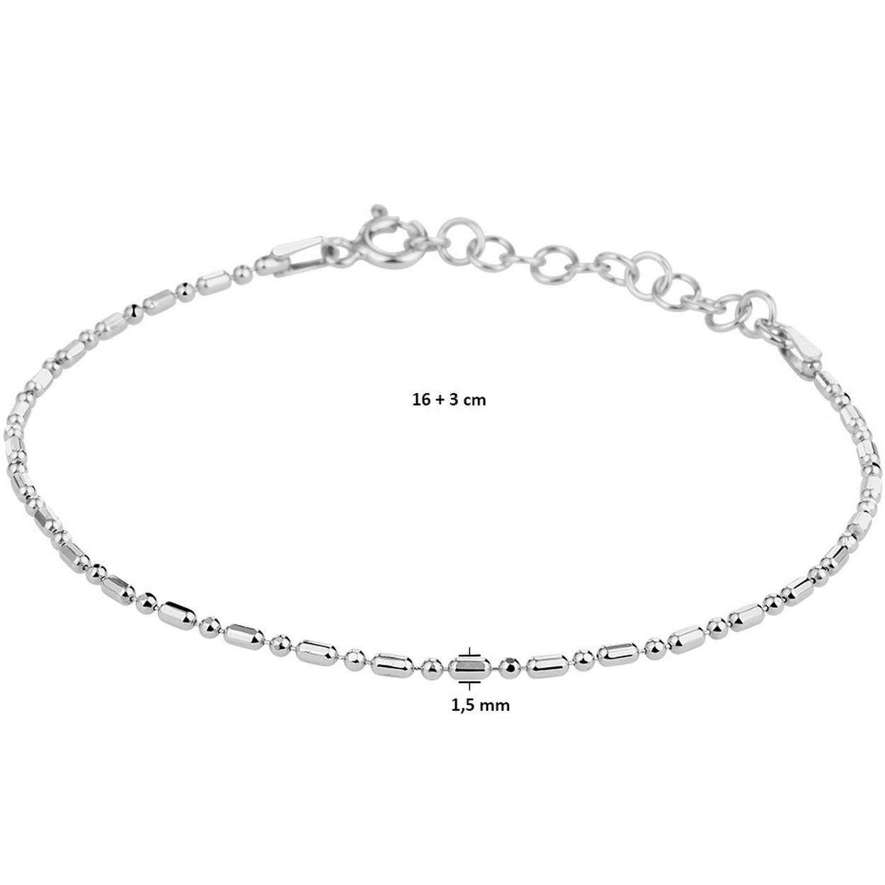 Gerhodineerd 925 zilveren armband met een schakelbreedte van 1.5mm. De armband heeft een draaglengte van 16cm met een extensie van 3cm.