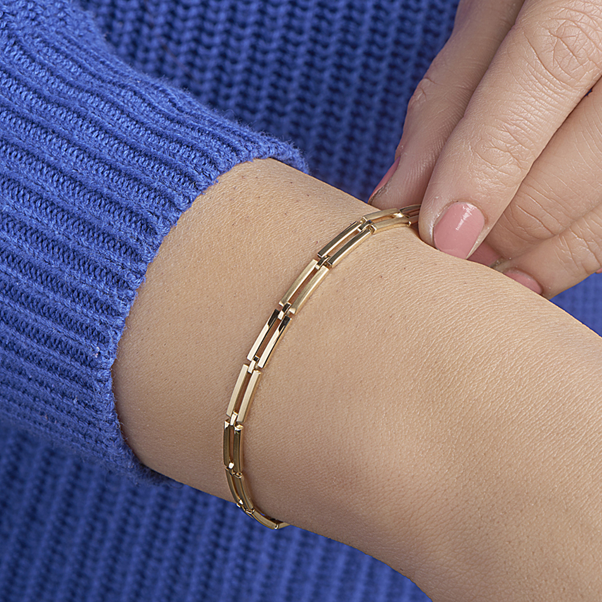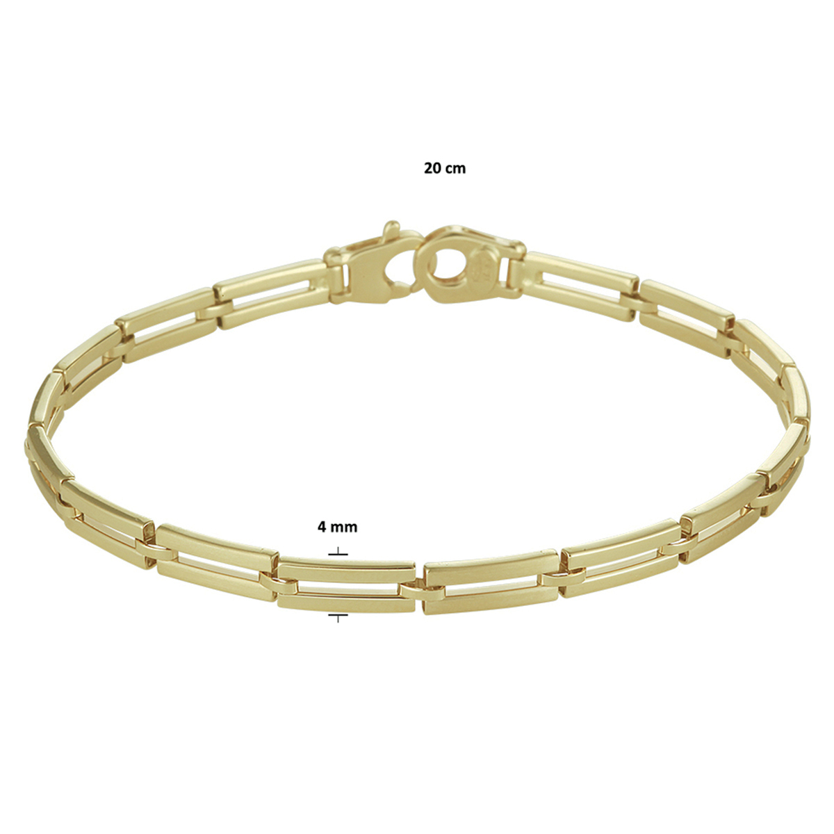 14k Geelgouden armband uitgevoerd met een stevige karabijn sluiting. De armband heeft een draaglengte van 20cm en is poli/mat afgewerkt.