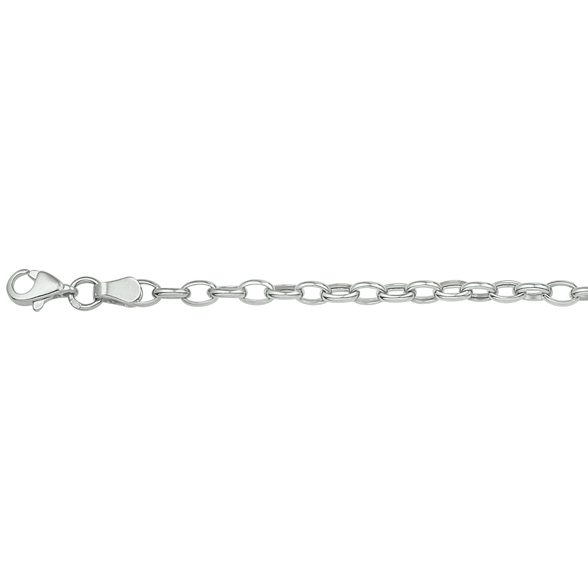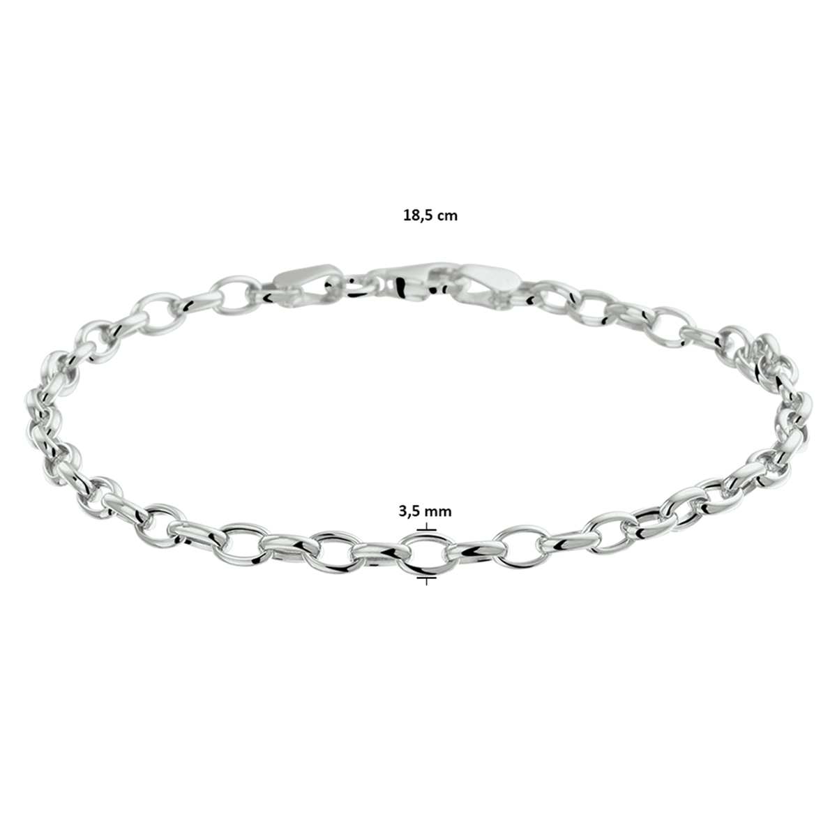 Witgouden anker armband met een draaglengte van 18.5cm en een schakelbreedte van 3.5mm. De armband heeft een poli afwerking en is uitgevoerd met een stevige karabijn sluiting.
