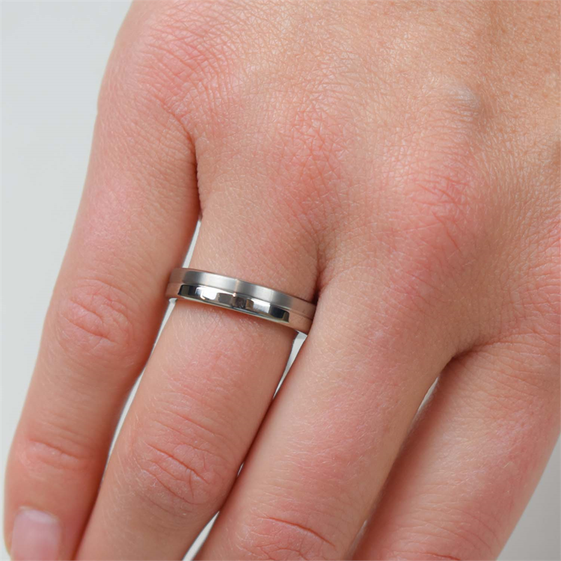 Deze gematteerde ring van Boccia Titanium heeft een glanzend accent. De ring is 4,3mm breed.