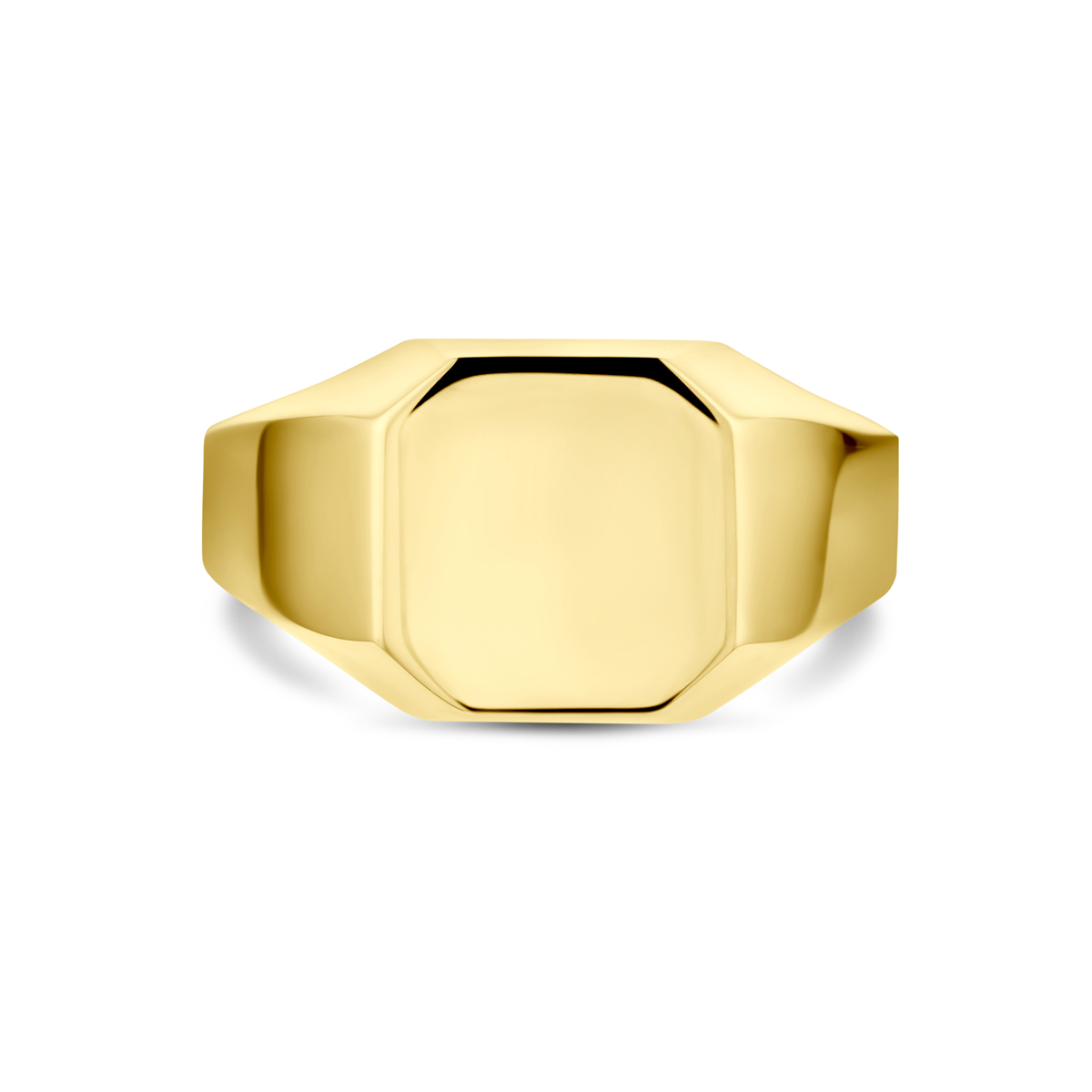 14k Geelgouden graveerring met een breedte van 10.5mm.