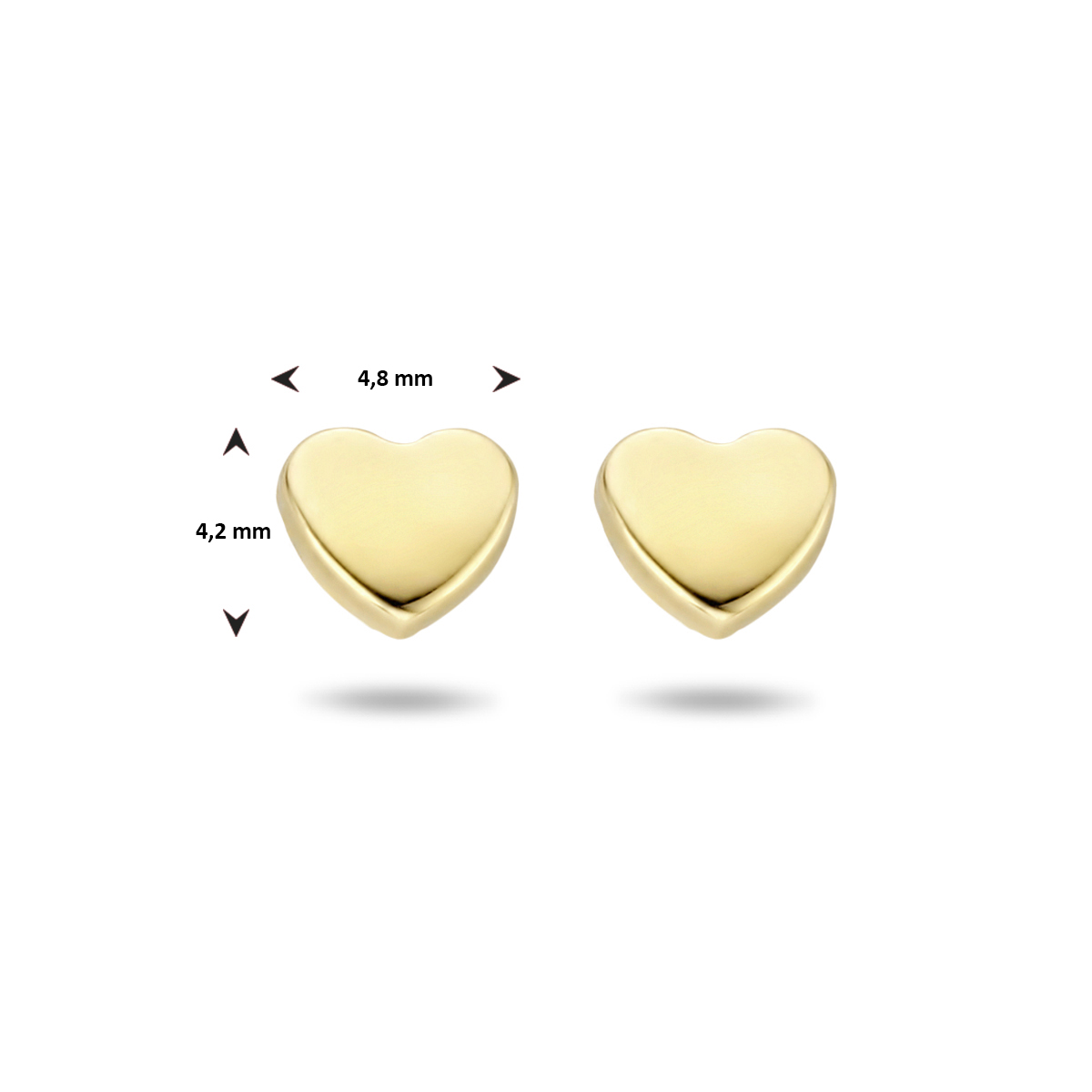14k Geelgouden oorknoppen met een ongebodemd hart. De oorknoppen hebben een afmeting van 4x5mm.