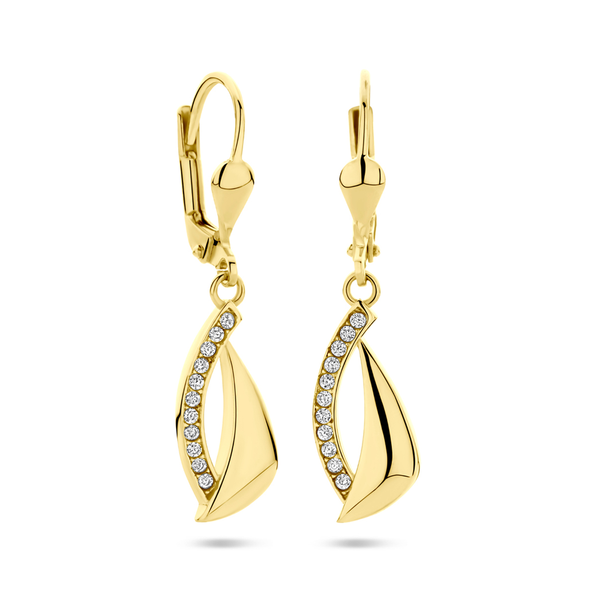 14k Geelgouden oorhangers uitgevoerd met zirkonia. De oorhangers hebben een totale hoogte van 31mm.