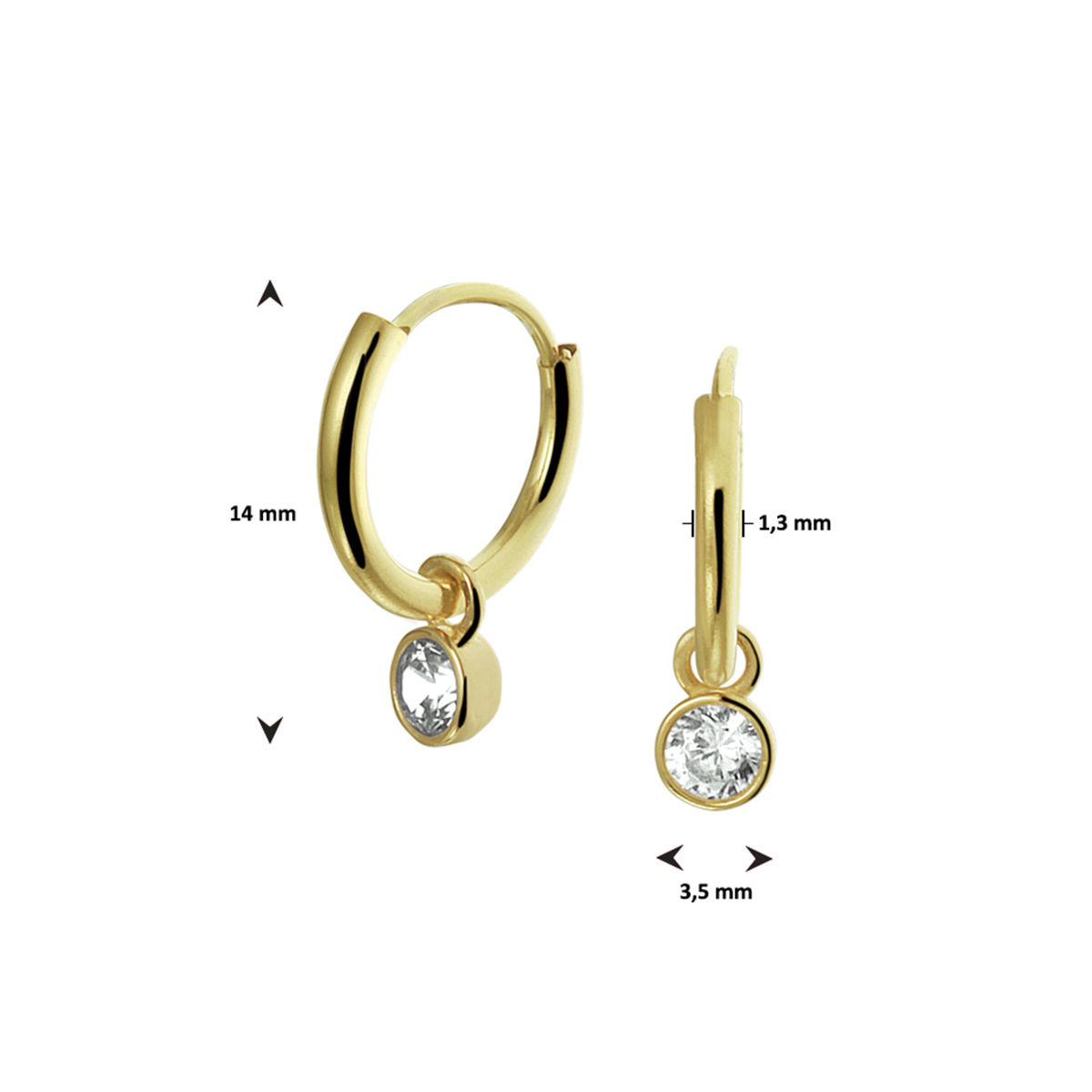 Trendy geelgouden oorringen met een schitterende zirkonia in een zetkast van 3.5mm. De oorringen hebben een afmeting van 11x1.3mm. Tip: Leuk om kado te geven! De oorringen hebben een subtiele uitstraling en kunnen dagelijks gedragen worden.