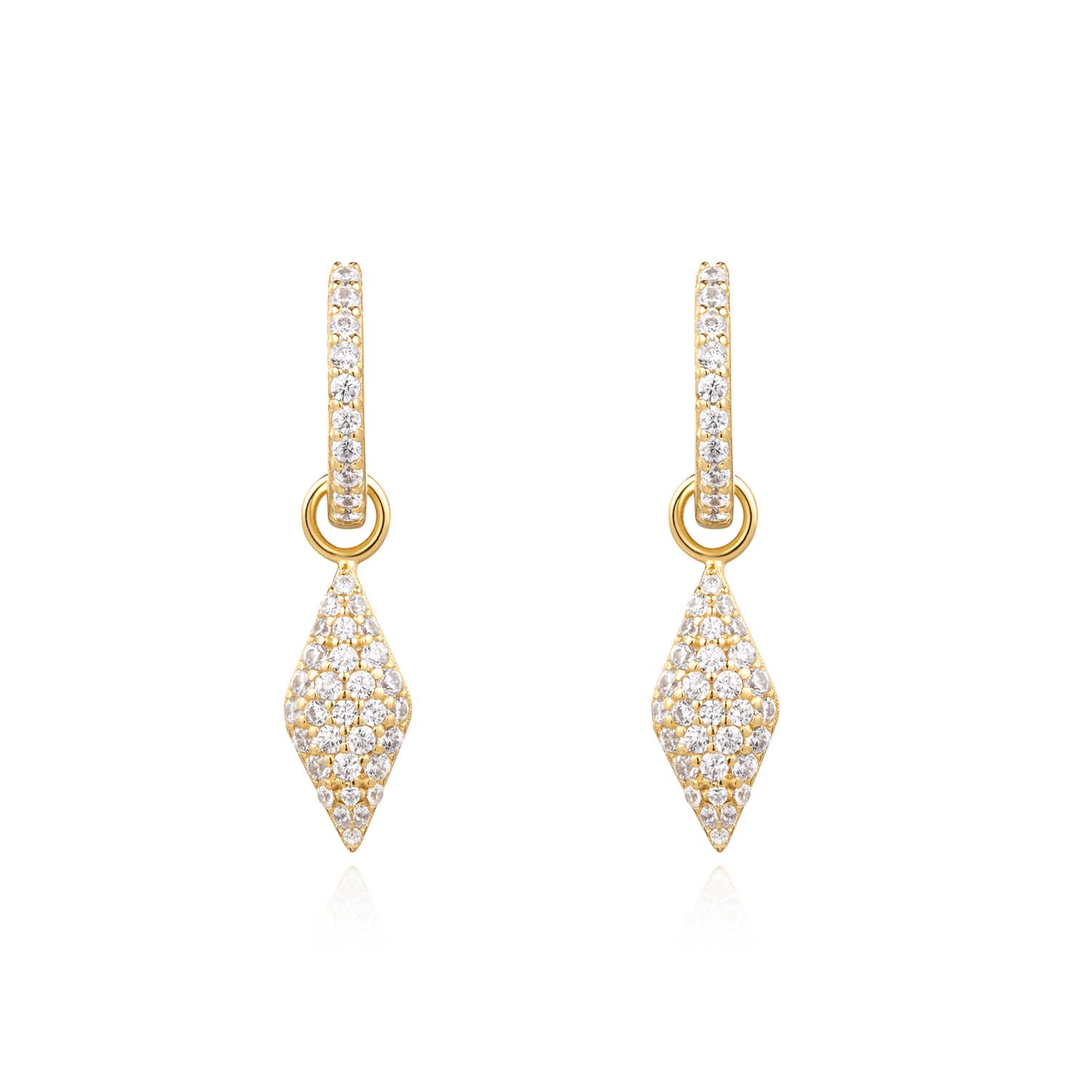 Wil je jezelf dit nieuwe seizoen verwennen? Met ons spectaculaire paar trendy huggies zit je helemaal goed. Met een chique ruitvormige druppel versierd met fonkelende kubieke zirkonia steentjes, kunnen deze sierlijke stukken je must-haves zijn om je stijl te verheffen met glitter en glans.