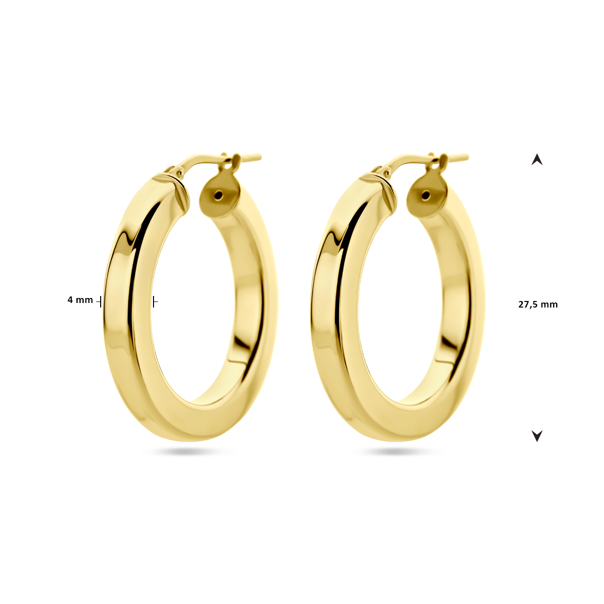 Verguld op 925 zilveren oorringen met een afmeting van 27.5x4mm. Geen garantie op de plating.