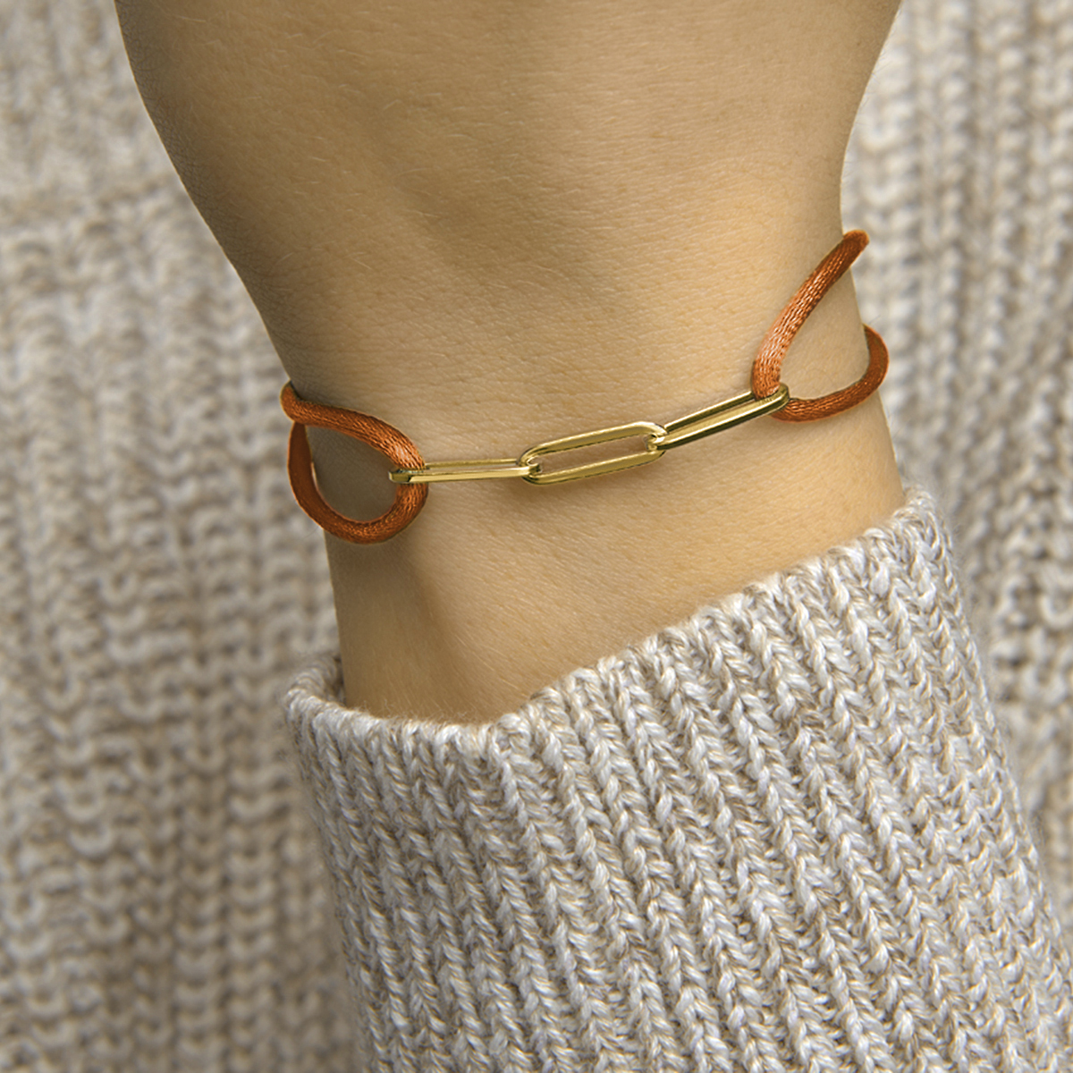 Roestbruin gevlochten armband uitgevoerd met een verguld op 925 zilveren element. De armband heeft draaglengtes van 13 tot 26cm. Het element heeft een afmeting van 40x5mm. Geen garantie op plating.