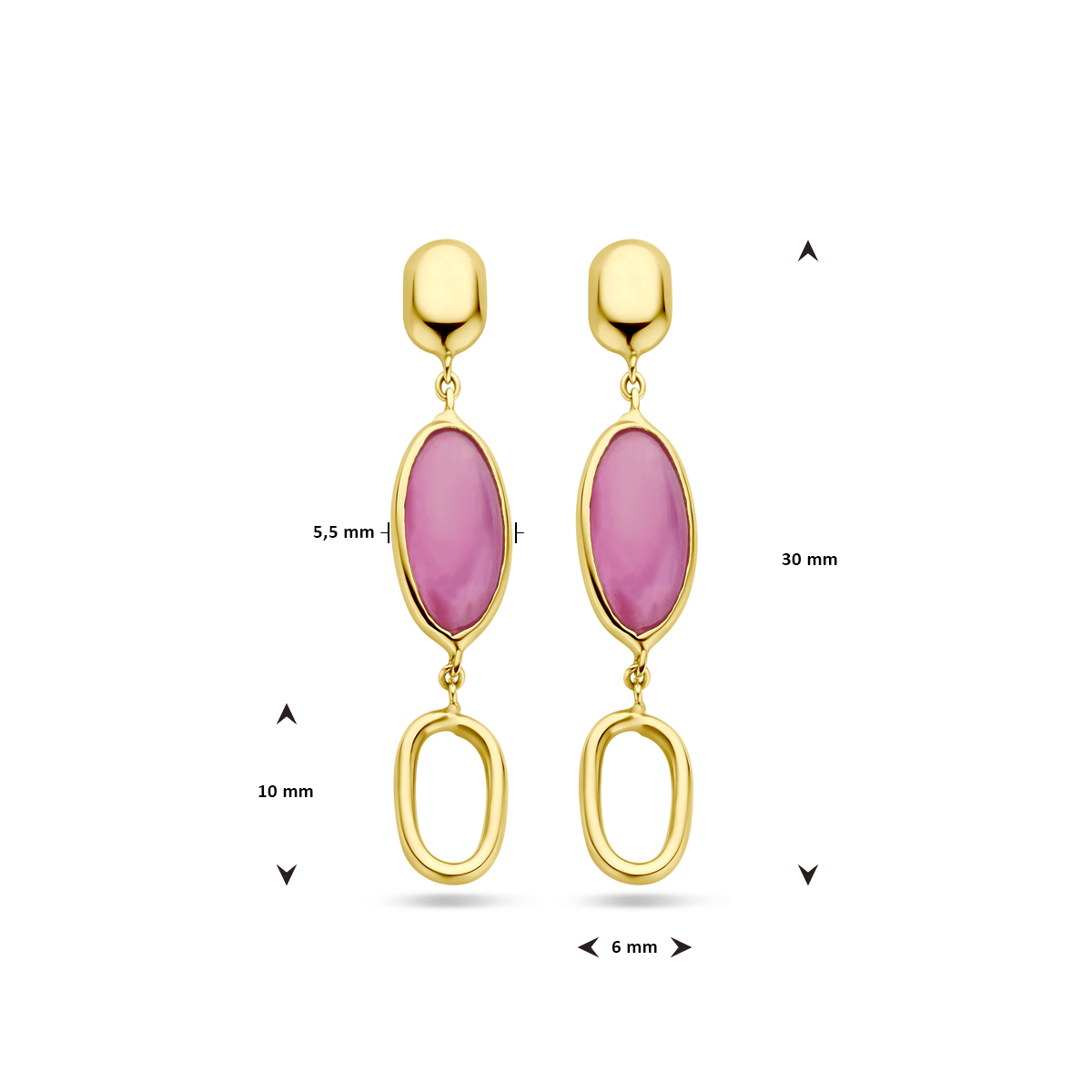 14k Geelgouden oorhangers uitgevoerd met robijn. De oorhangers hebben een totale hoogte van 30mm.
