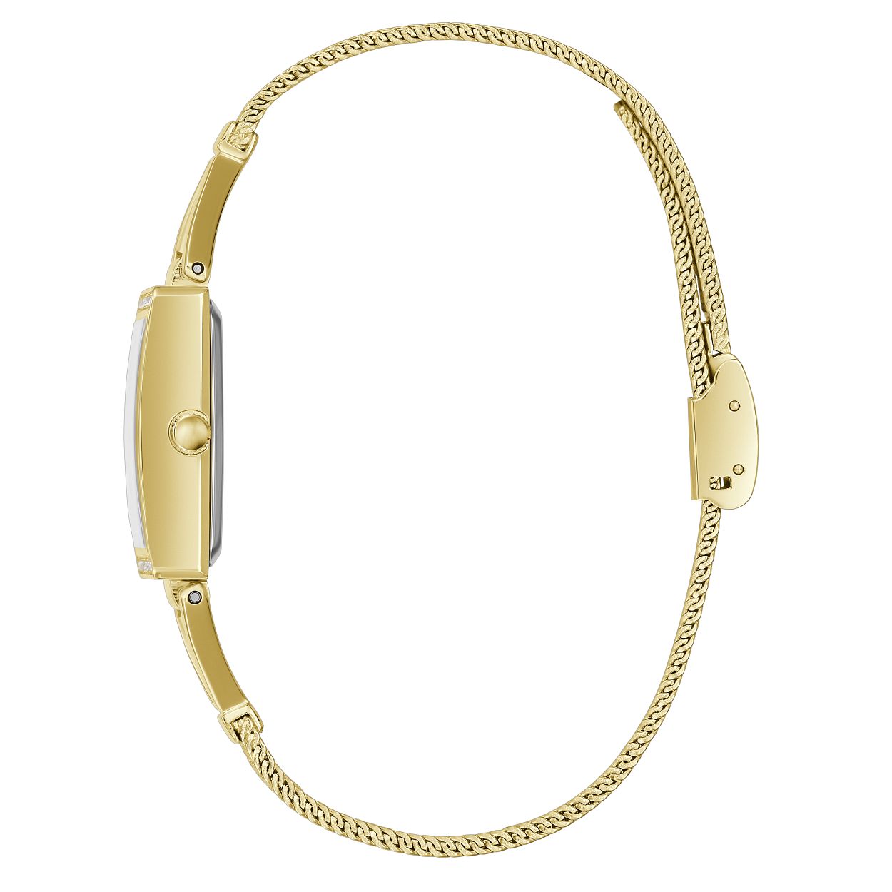 De fijne mesh horlogeband van dit luxe model uit de GRACE serie van Guess Watches, maakt van dit horloge bijna een sieraad. Dit tonneau model is rondom gezet met kristallen en afgedekt met mineraalglas voor een heldere look. De zilverkleurige wijzers zijn voorzien van een Super-LumiNova coating.