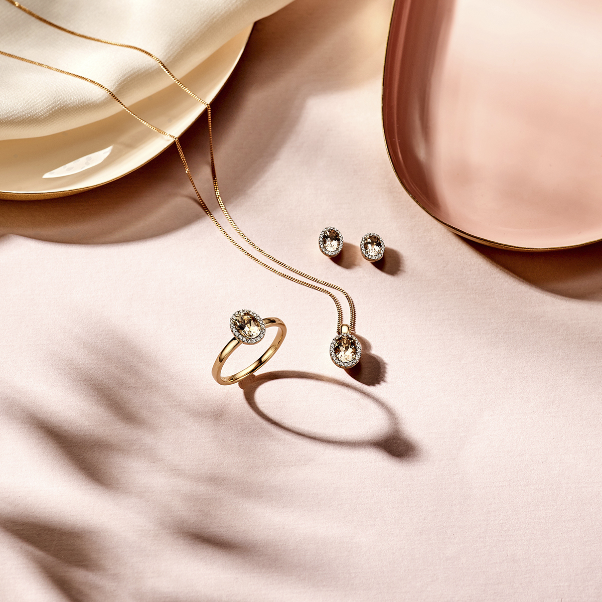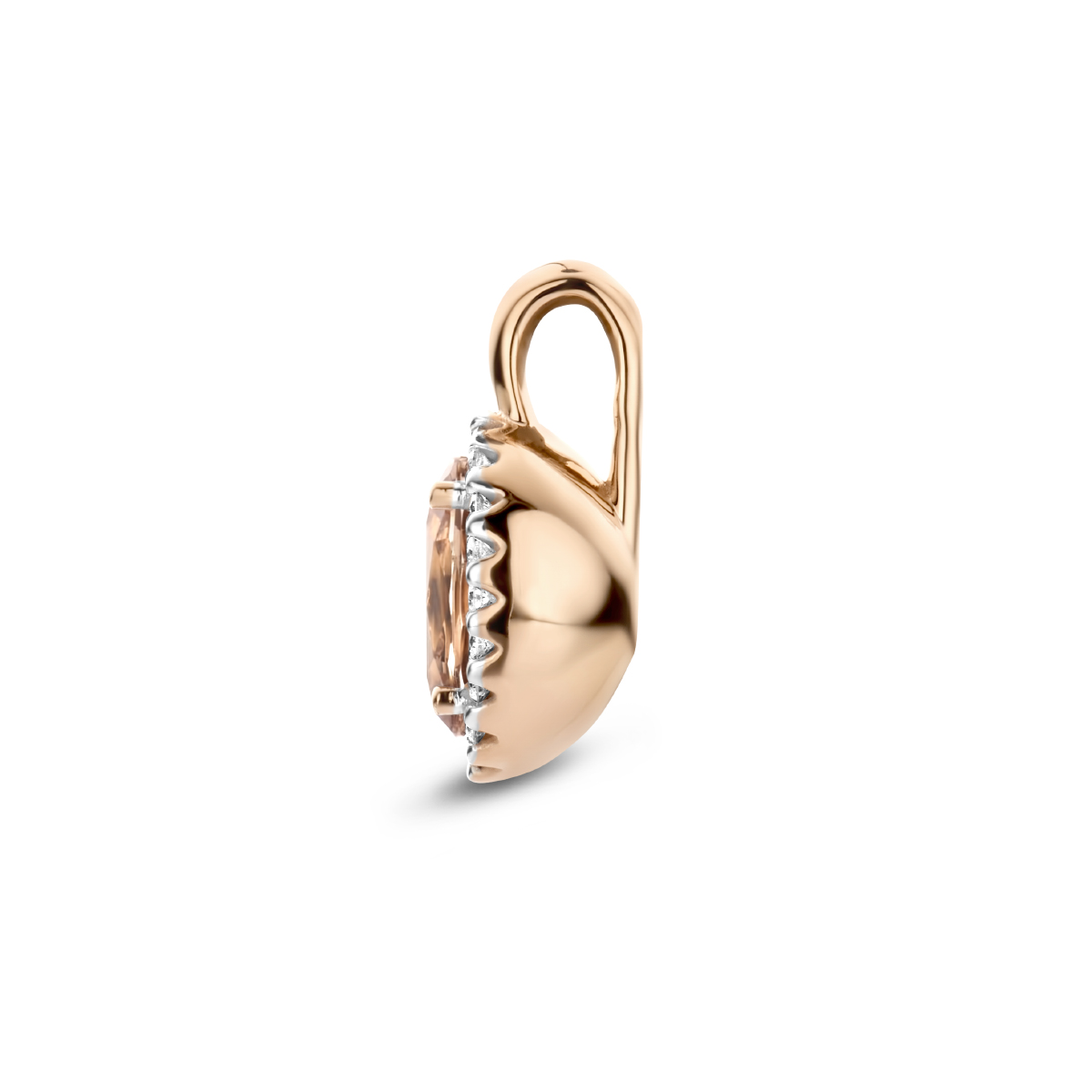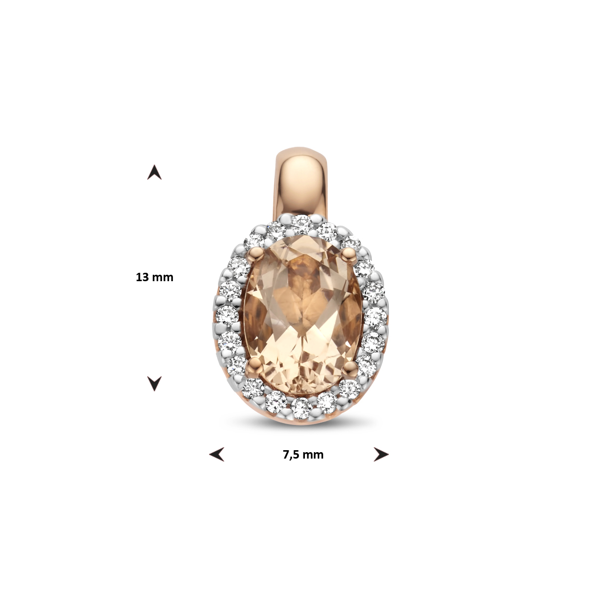 14k Rosegouden hanger uitgevoerd met een schitterende morganiet en een diamant rij.
