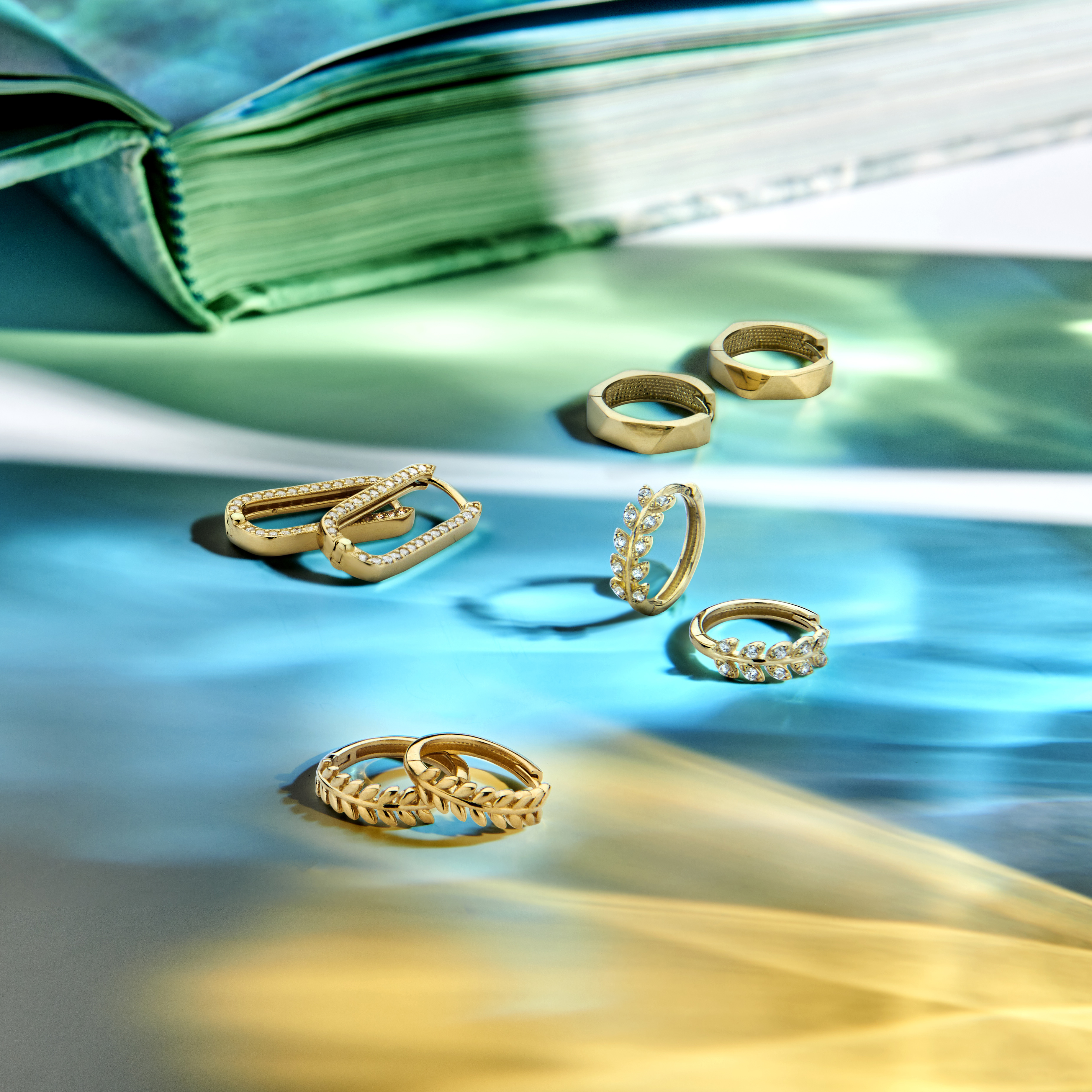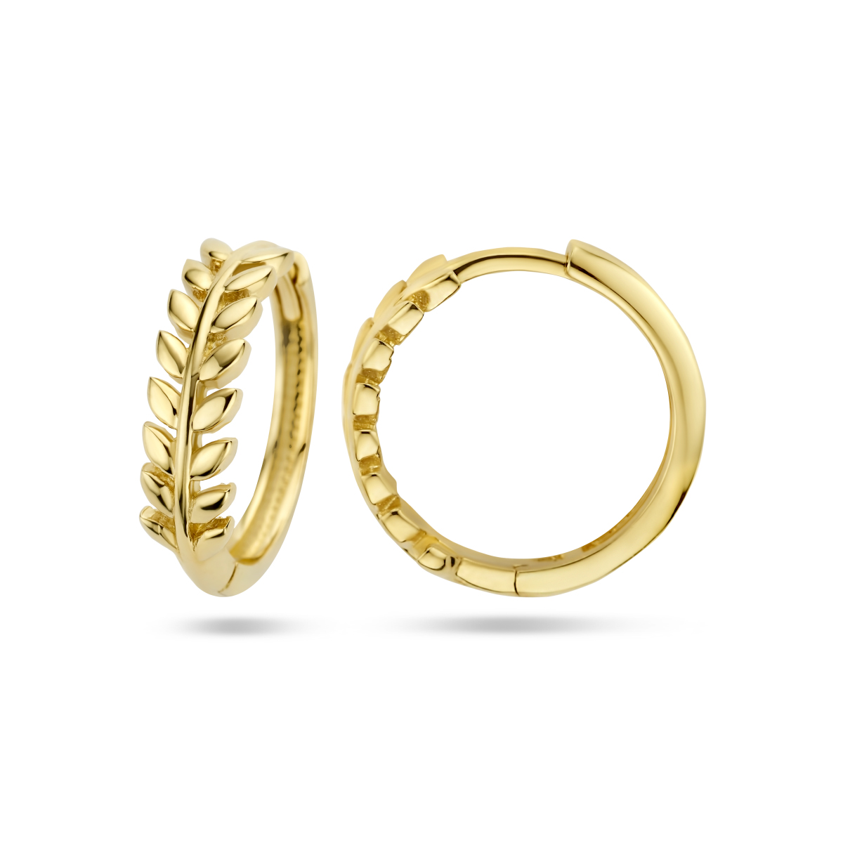 14k Geelgouden klapoorringen met een veer voorstelling. De oorringen hebben een afmeting van 14.5x4mm.