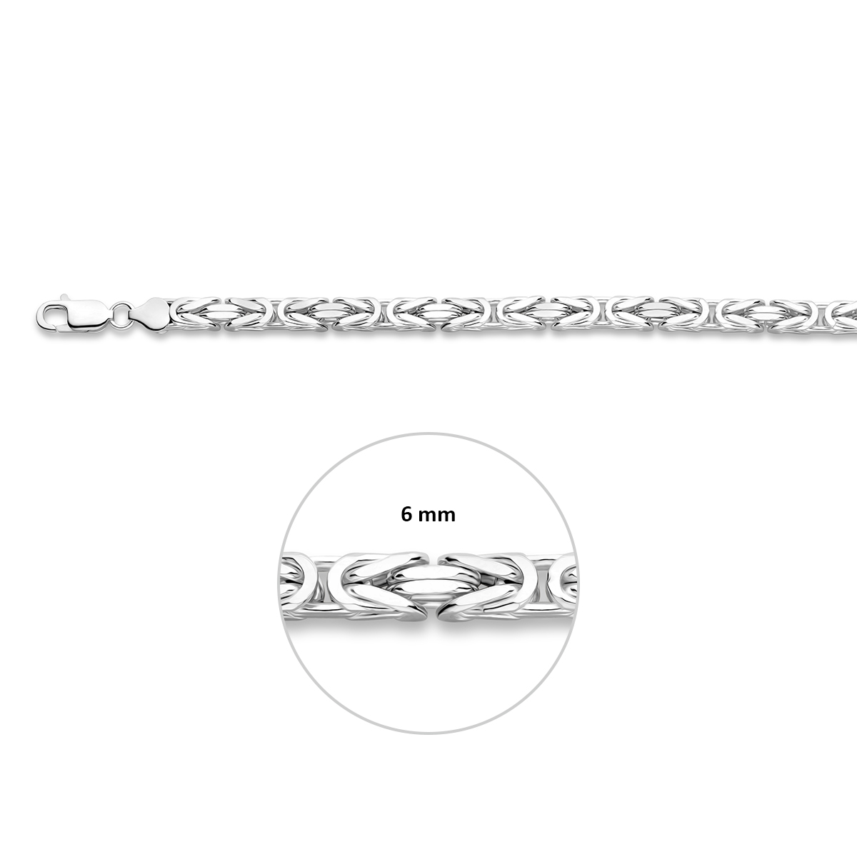 Zilveren lengte artikel met konings schakel. De schakelbreedte is 6.0mm.
