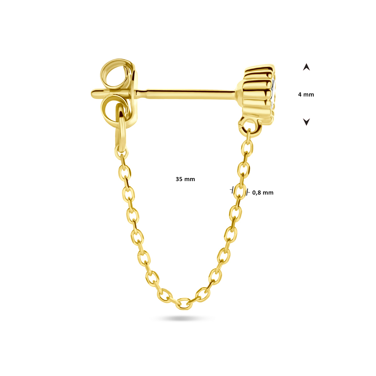 14k Geelgoud oorknop uitgevoerd met een zirkonia. Met een diameter van 4mm. Deze oorsieraden worden per stuk verkocht ipv per paar.