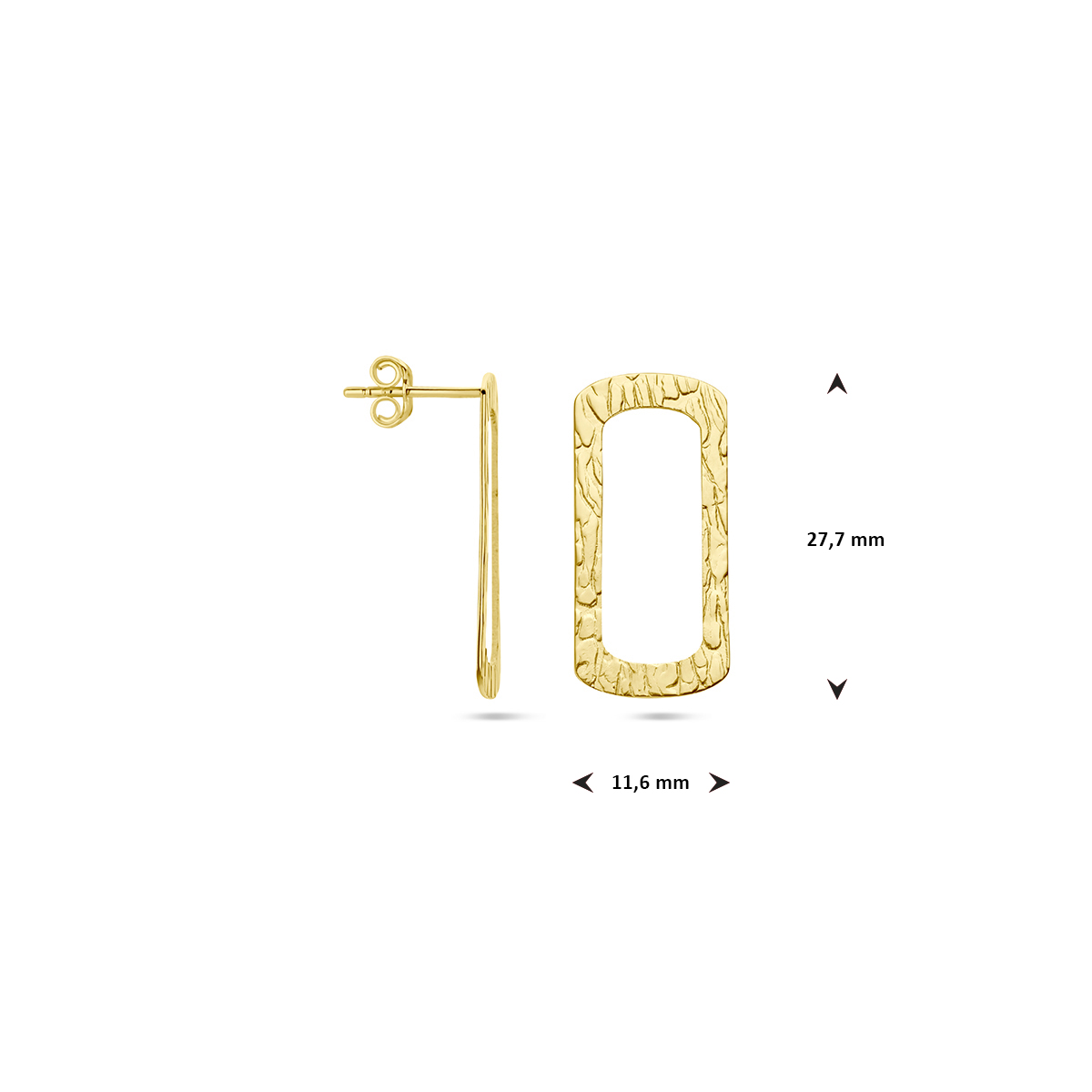 14k Geelgouden oorknoppen. De oorknoppen hebben een afmeting van 27.7x11.6mm.