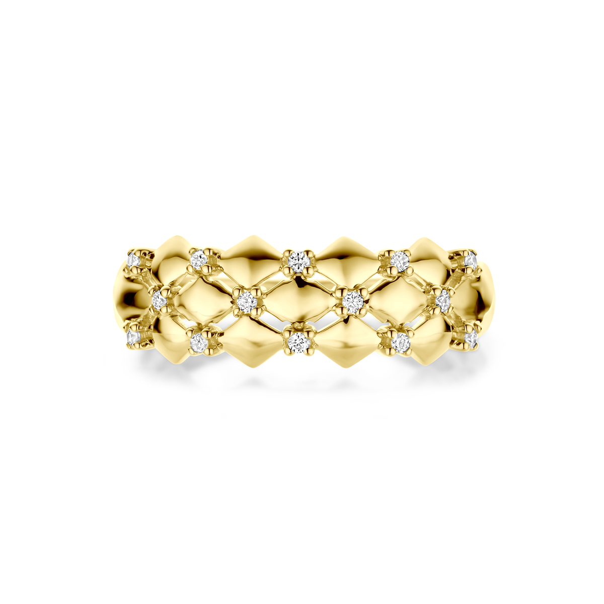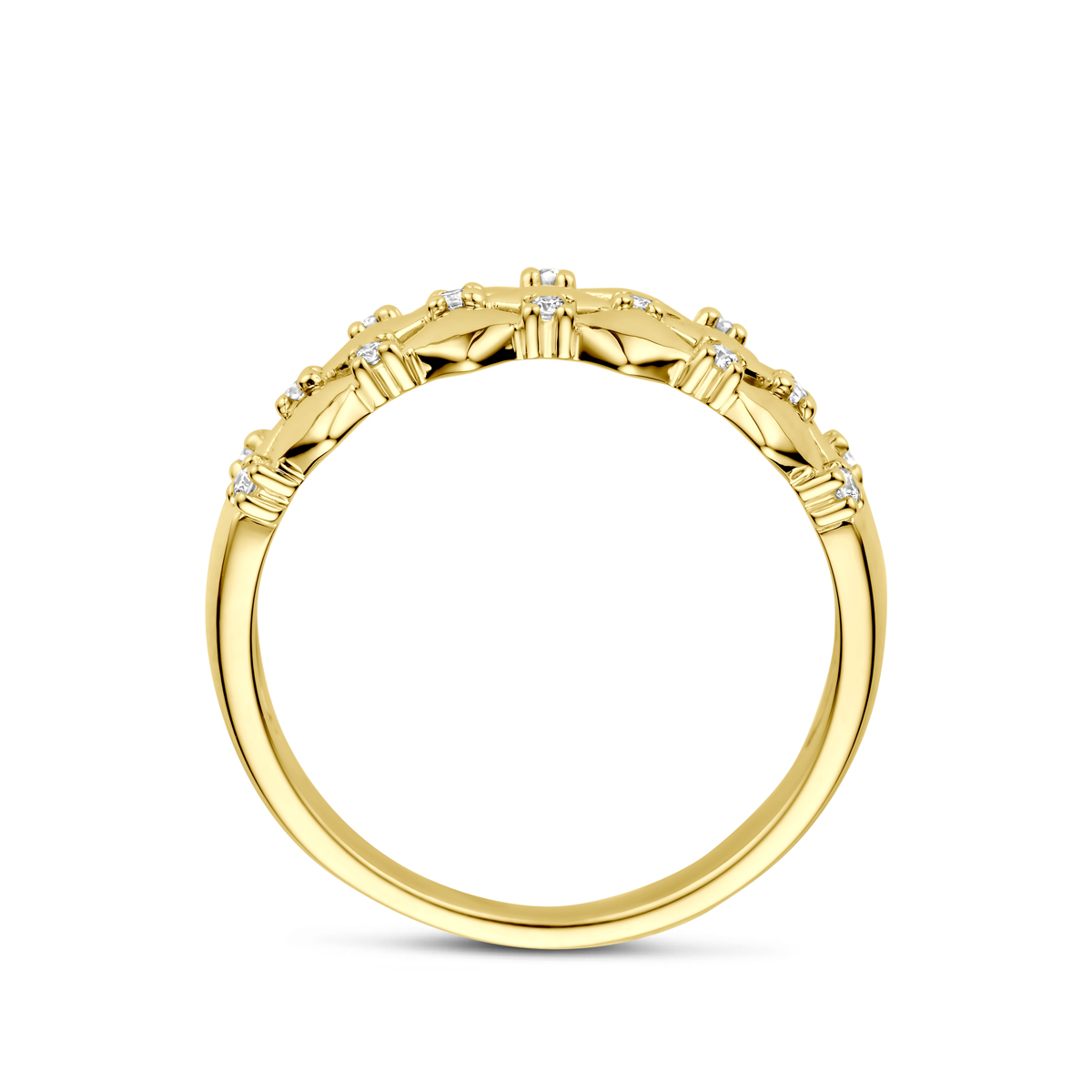 14k Geelgouden ring uitgevoerd met diamant. De ring heeft een breedte van 7mm. Het totale diamantgewicht is 0.08ct.