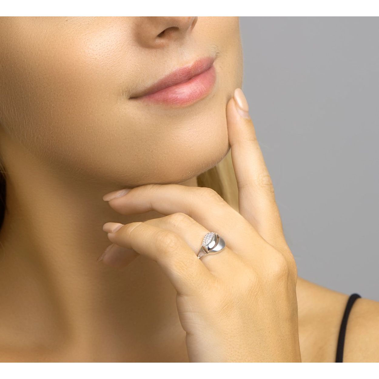 Gerhodineerd zilveren ring uitgevoerd met een vlak van schitterende zirkonia. De ring is poli/mat afgewerkt en heeft een breedte van 11mm.