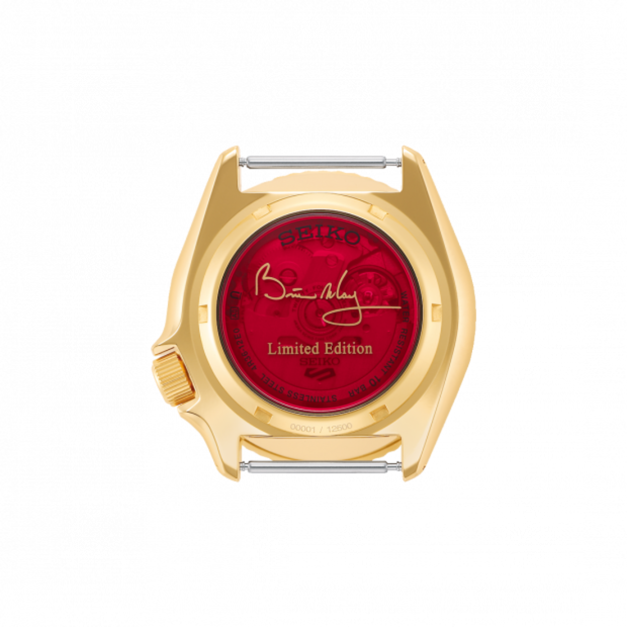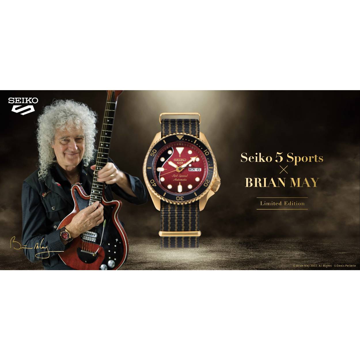 Seiko 5 Sports introduceert een tweede Limited Edition model in samenwerking met Brian May, gitarist van de legendarische rockband QUEEN! Brian's favoriete gitaar, de ‘Red Special’, is ook nu de inspiratiebron voor het goudkleurige ontwerp in deze speciale serie.