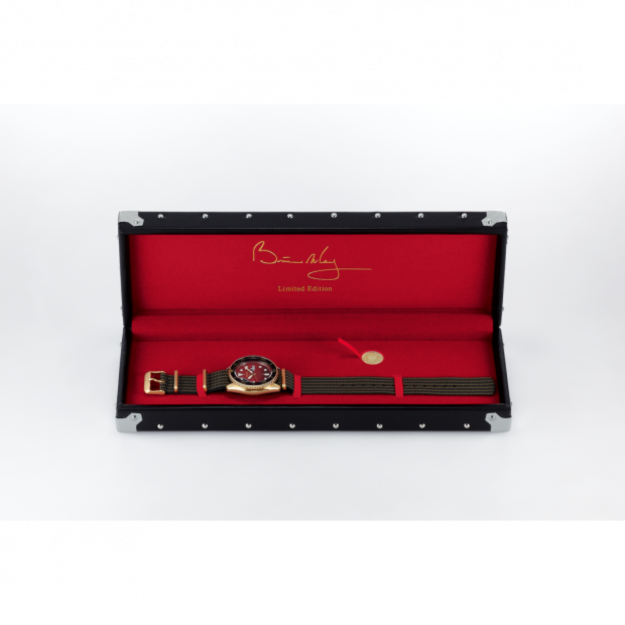 Het horloge wordt uitgebracht als een Limited Edition met Brian’s handtekening op de achterdeksel, plus de toevoeging ‘LIMITED EDITION’ en een serienummer variërend van 00001/12500 tot 12500/12500.