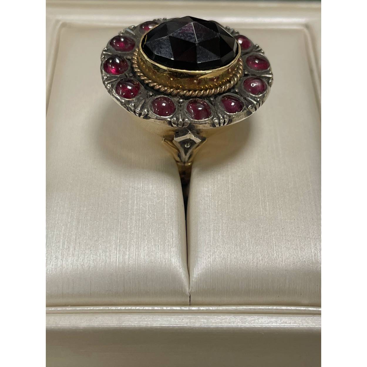 VINTAGE 14 krt gouden ring granaat gezet in zilver