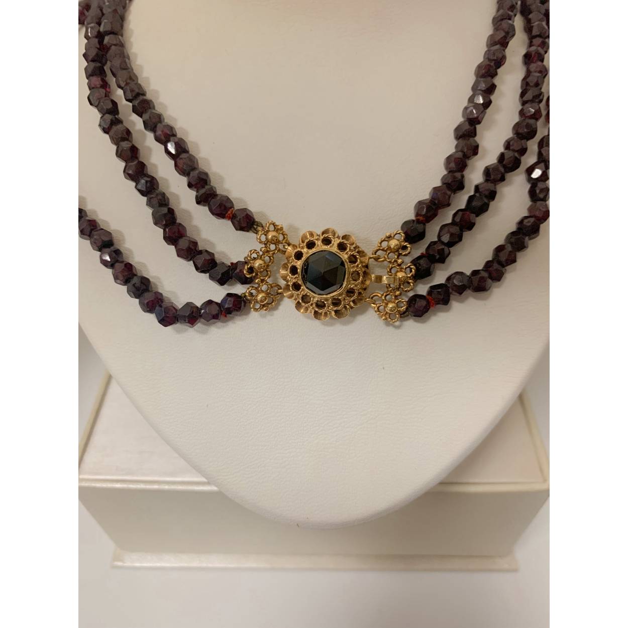 VINTAGE 3 strengen granaat collier met gouden sluiting