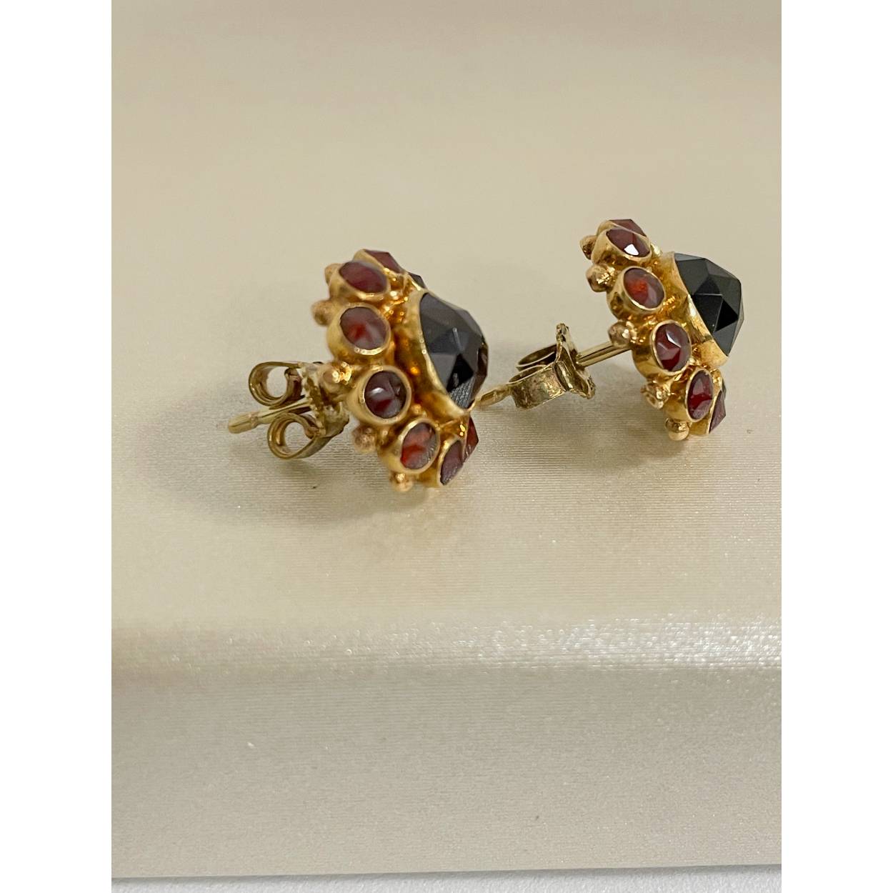 VINTAGE geelgouden oorstekers geslepen granaat