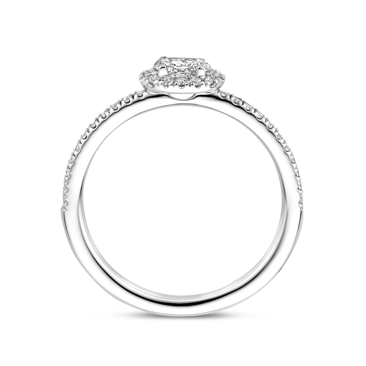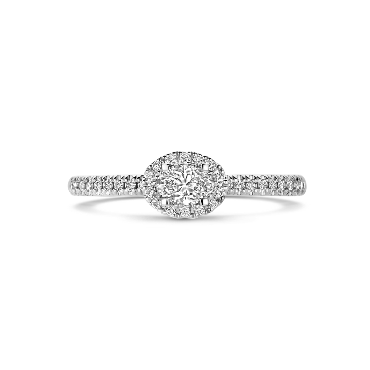 14k Witgouden ring uitgevoerd met diamant. De ring heeft een afmeting van 6x7.5mm. De totale diamantgewicht is 0.41ct.