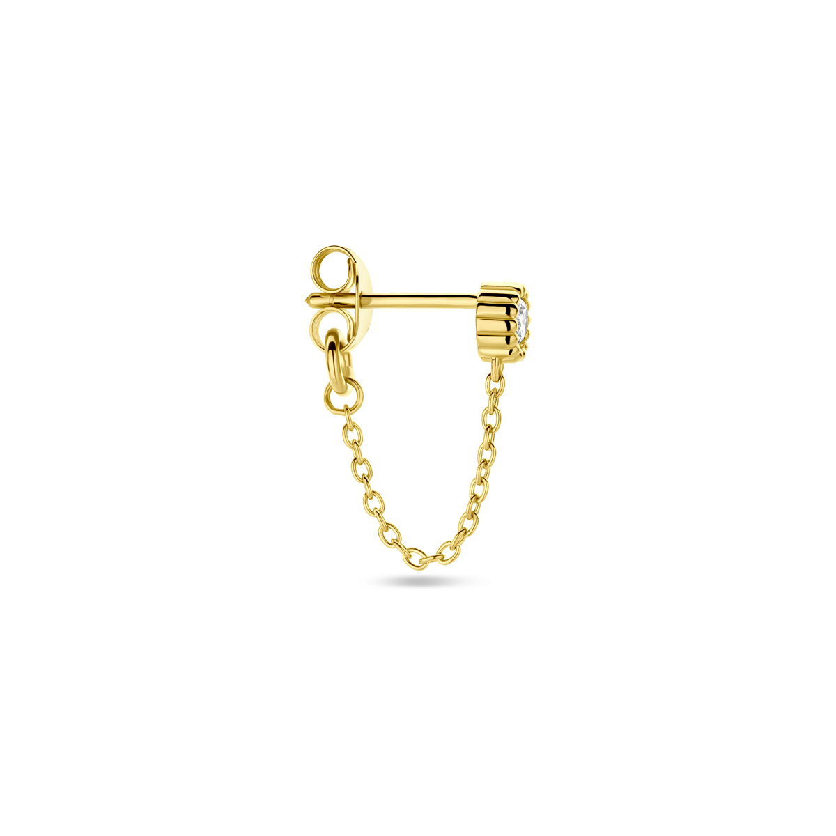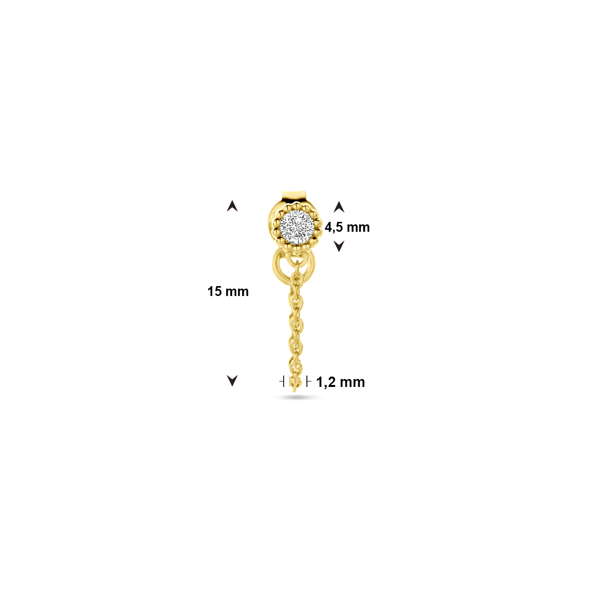 Verguld op 925 zilveren oorknop uitgevoerd met wit zirkonia. De oorknop heeft een diameter van 4.5mm. Deze oorsieraden worden per stuk verkocht ipv per paar. Geen garantie op de plating.