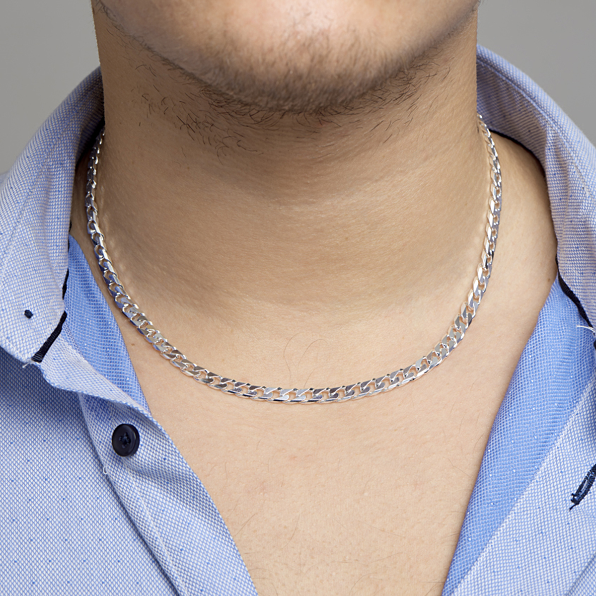 Zilveren lengte artikel met geslepen gourmette schakel. De schakelbreedte is 6.0mm.