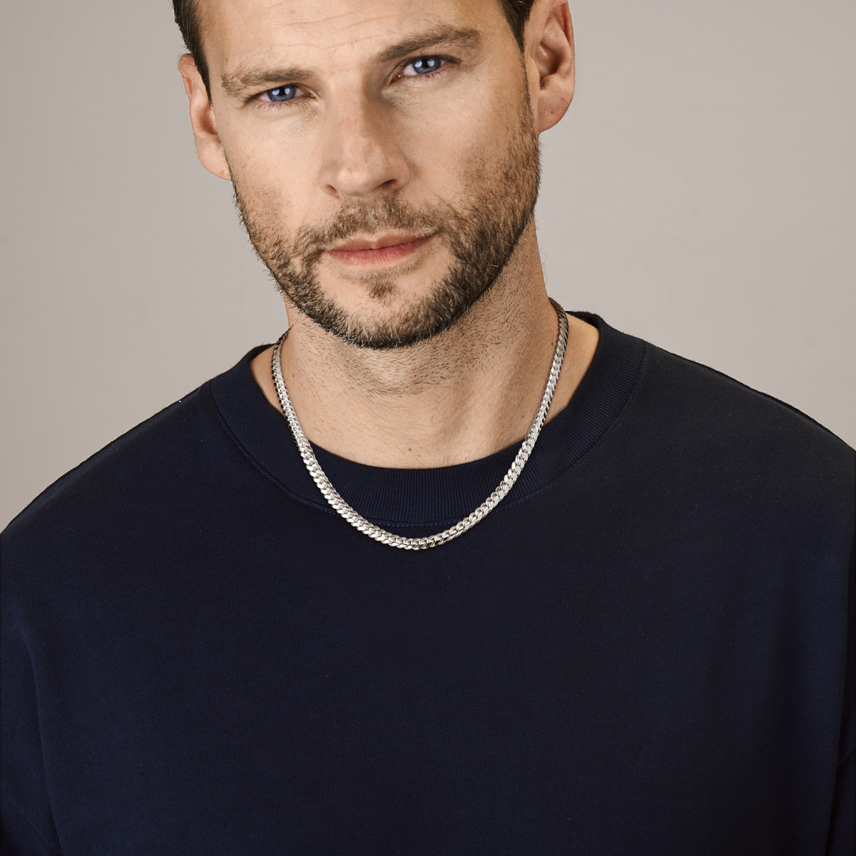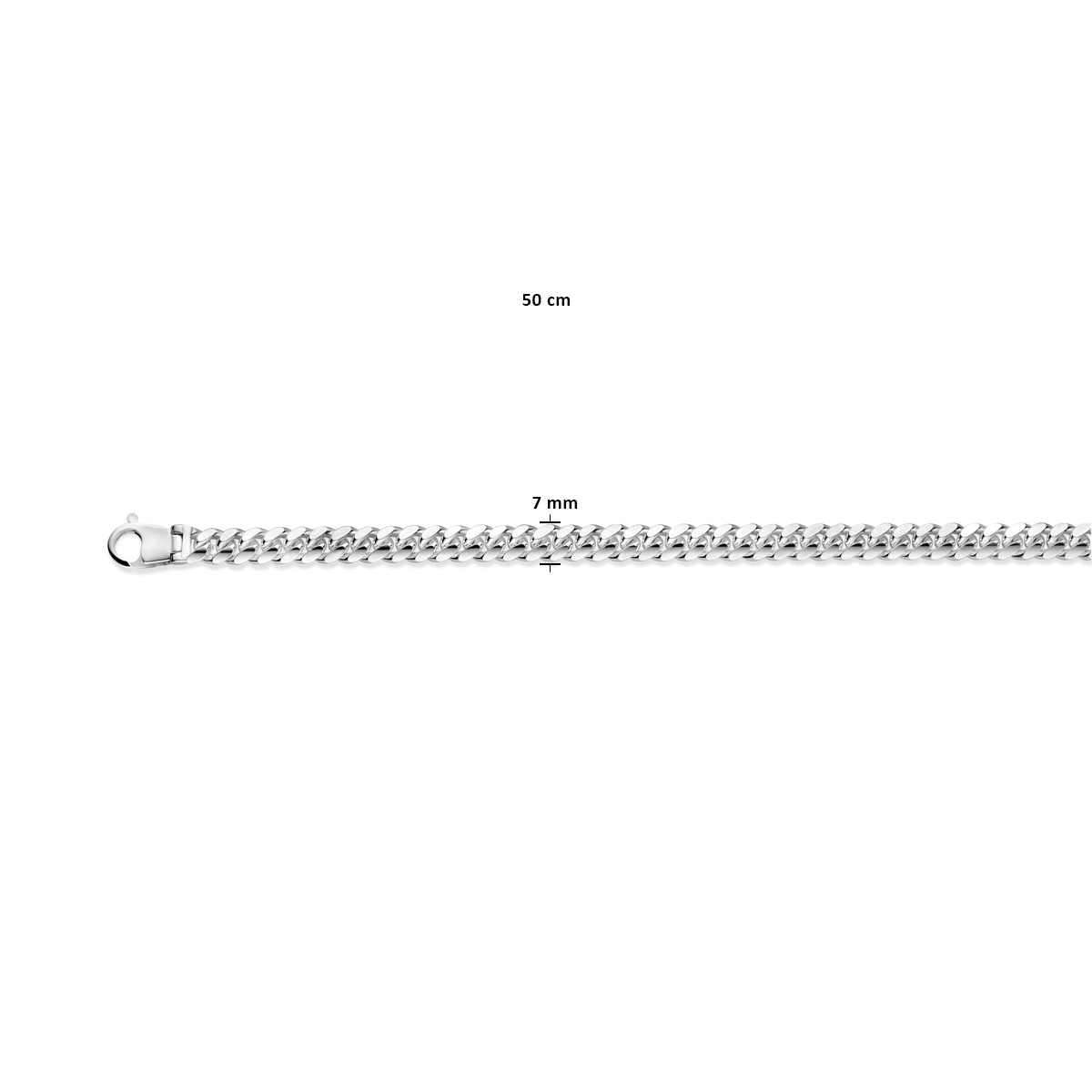 925 Zilveren lengteartikel uitgevoerd met een gourmette schakel van 7mm en een karabijnsluiting.